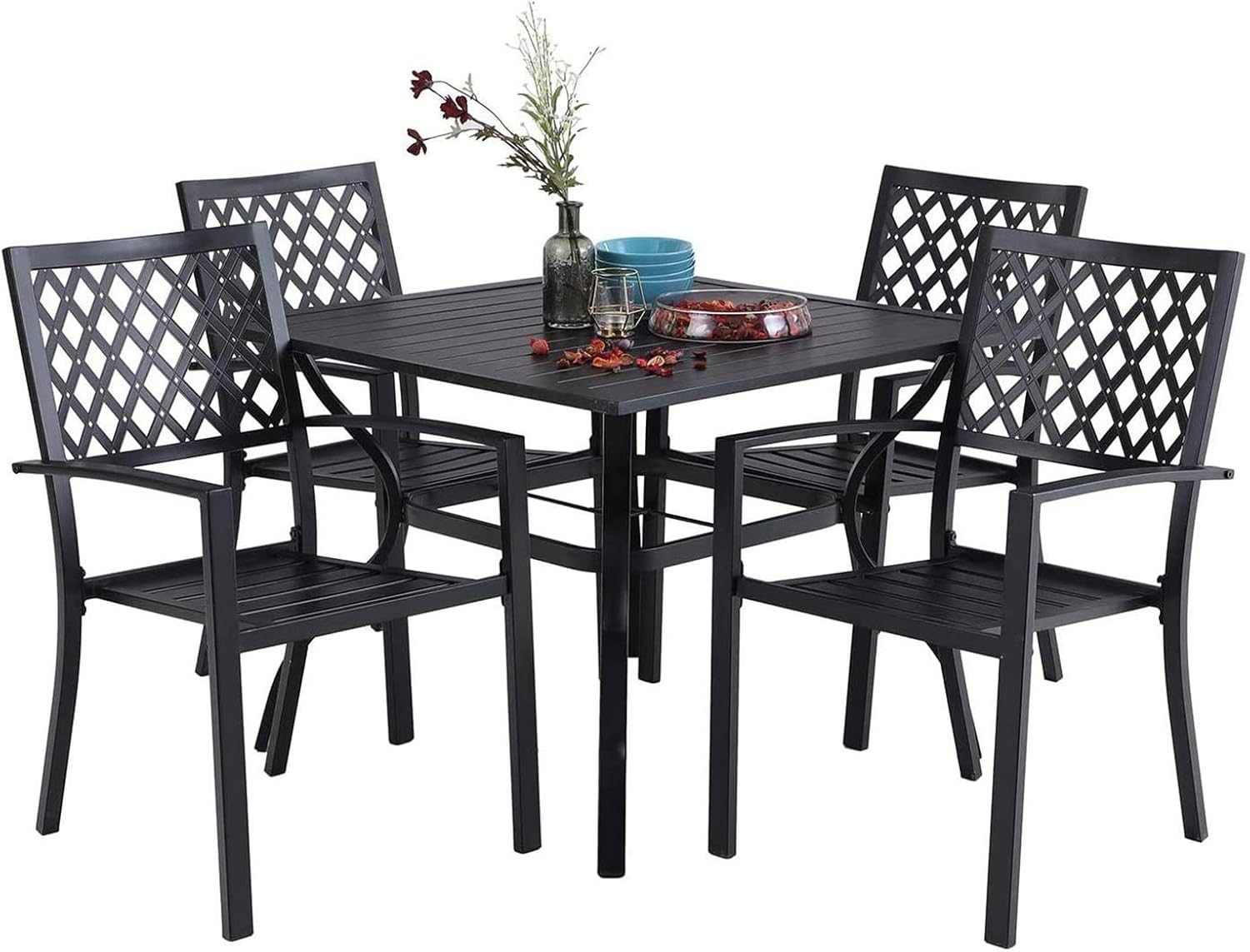 Barton vienna 5 piece metal sling square outdoor patio dining set 4 chairs and 1 table furniture kit93501 the home depot.